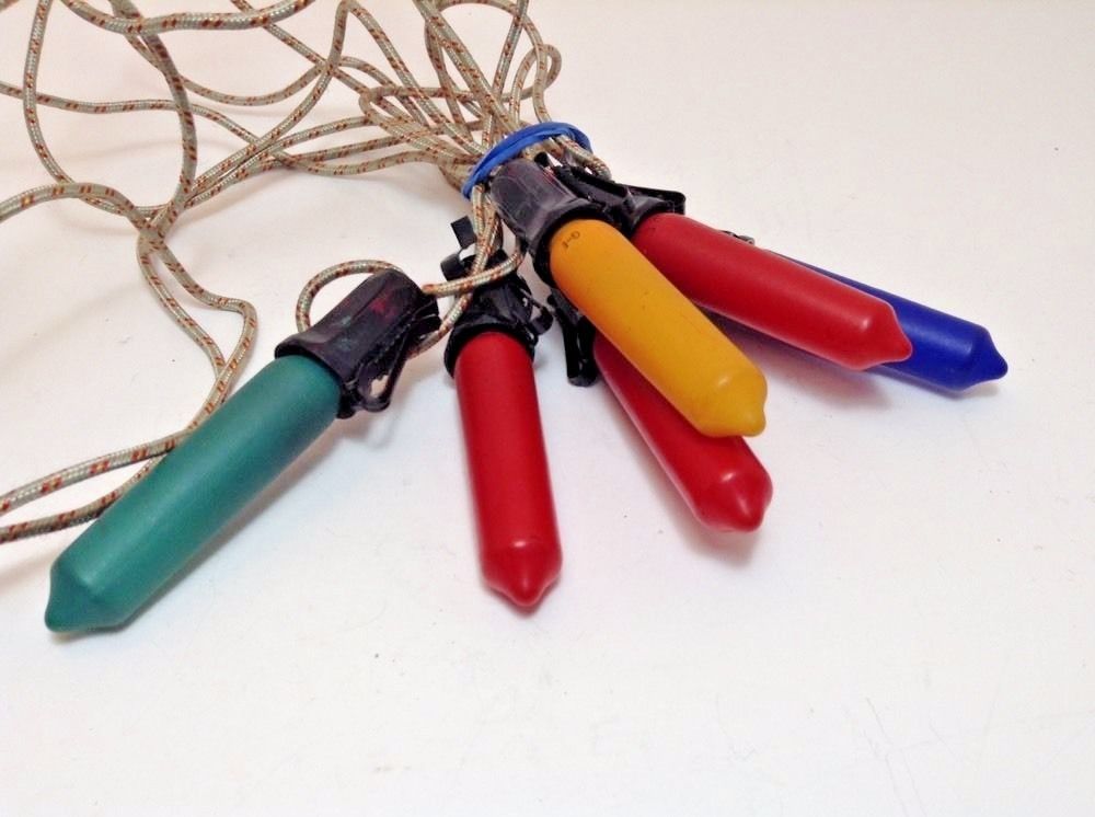 Title (ebay affiliate link): Antique/Vintage Working C6(?) GE CHRISTMAS Tube Style LIGHT BULBS