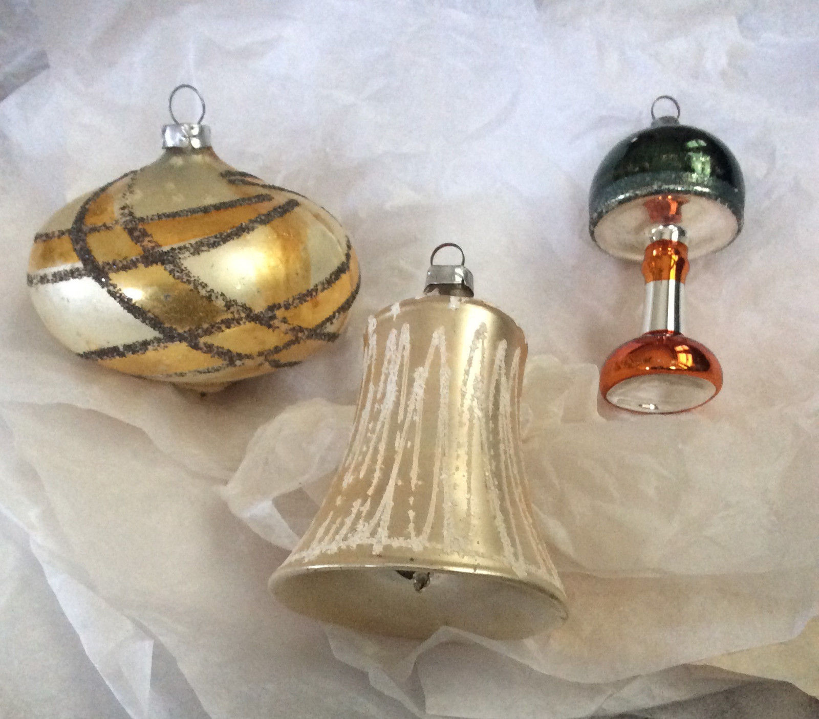 Title (ebay affiliate link): Lot 3 Antique BLOWN GLASS CHRISTMAS ORNAMENTS Orb Lamp Bell