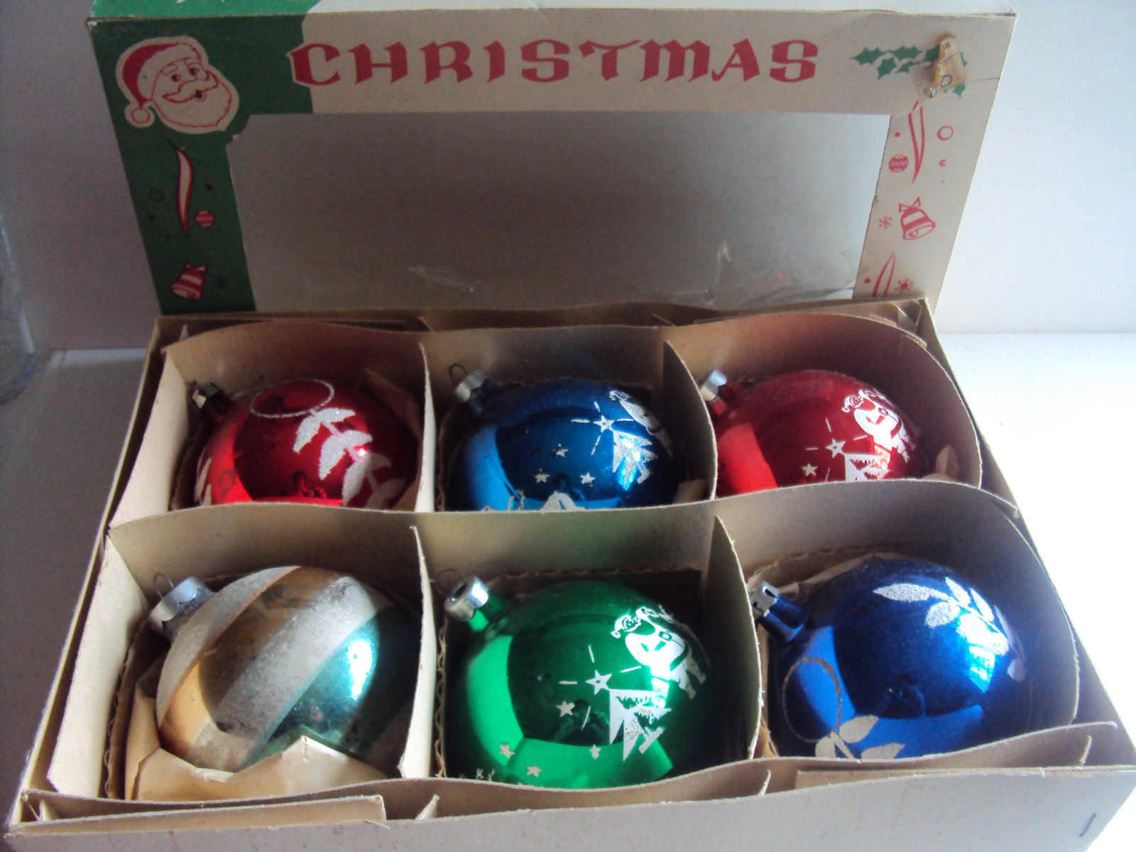Title (ebay affiliate link): 6 Vintage Large Stenciled Glass Christmas Ornaments