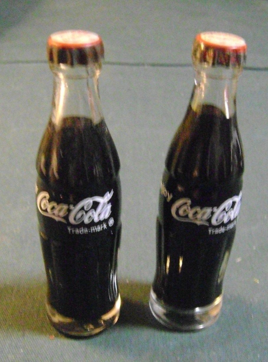 2 MINIATURE COCA COLA BOTTLES 3" TALL