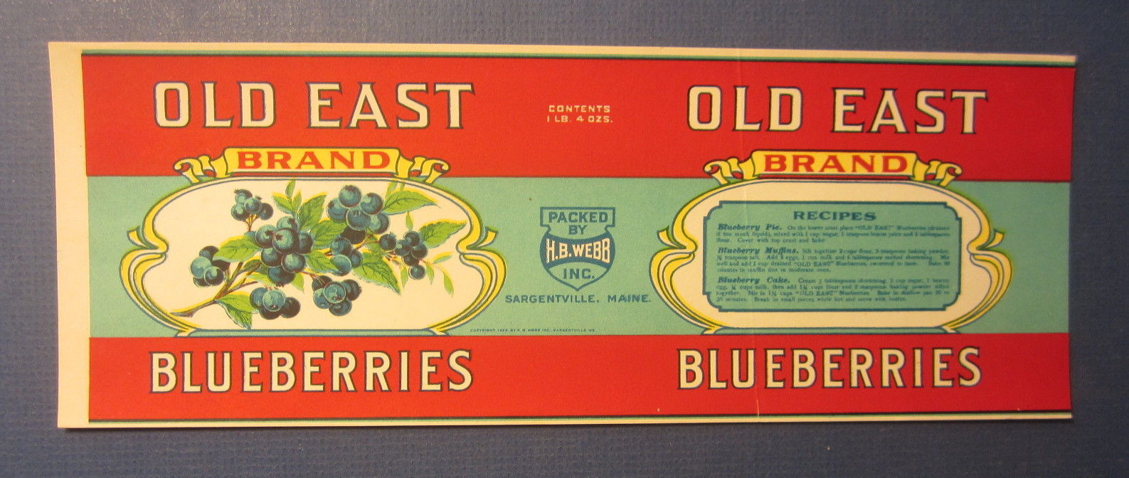 Title (ebay affiliate link): Old Vintage 1929 OLD EAST BRAND Blueberries CAN LABEL HB Webb Sargentville MAINE