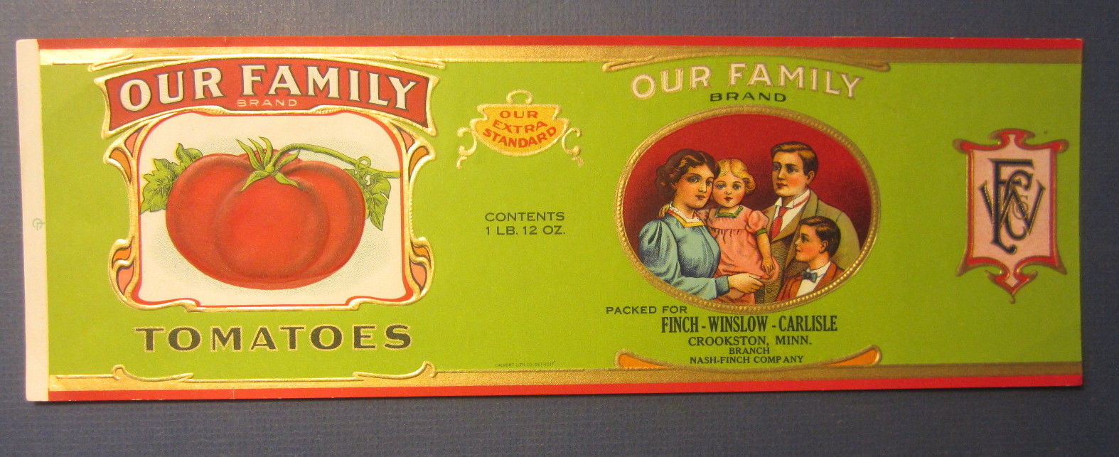 Title (ebay affiliate link): Old Vintage 1920's OUR FAMILY Tomatoes CAN LABEL - Crookston MINN. - CALVERT