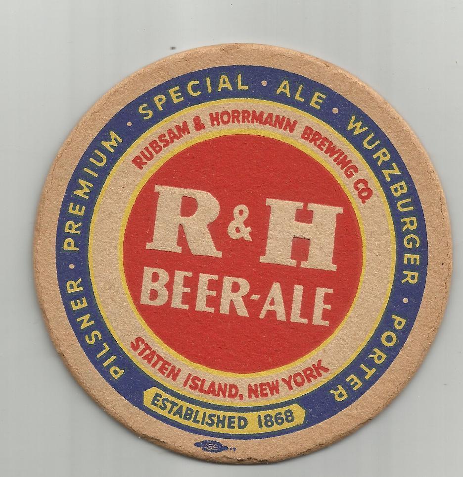 Title (ebay affiliate link): 1940's R&H Beer & Ale Coaster-Staten Island, NY 4".."Red, Blue & Yellow "Specia