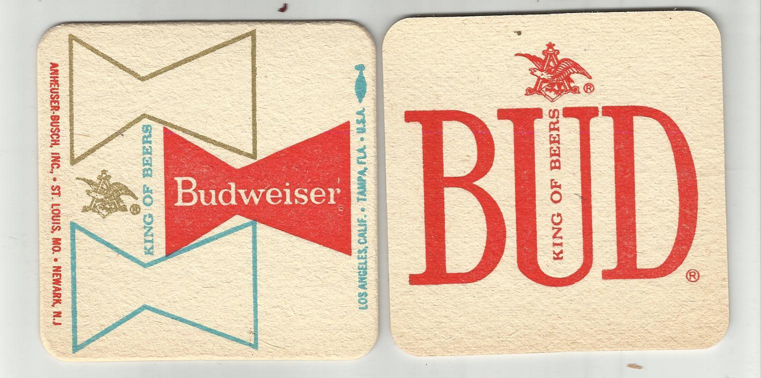 Pair Of 1950's Budweiser Beer Coasters-St.Louis, MO 3 1/2" "King Of Beers"#1110