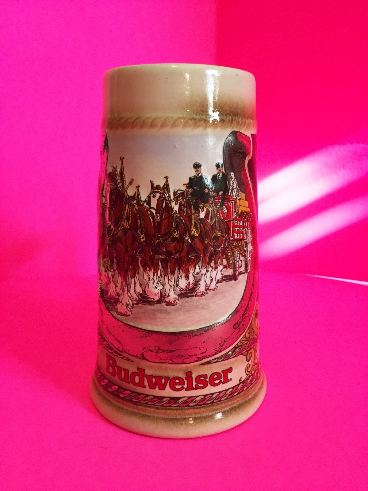 Title (ebay affiliate link): Budweiser Anheuser Busch Mug Beer Stein Staffel Stoneware Clydesdales GERMANY