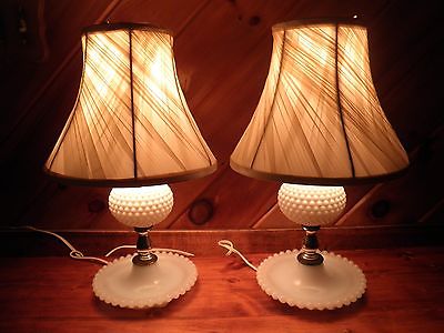 Title (ebay affiliate link): VTG Pair White Milk Glass Hob Nail Boudoir Lamps & Shade Shabby Cottage Country