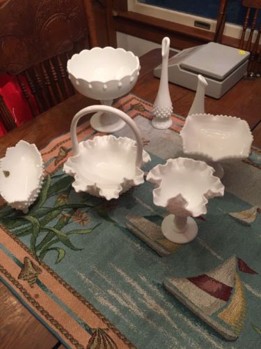 SEVEN pieces of assorted Milk Glass Fenton Westmorland