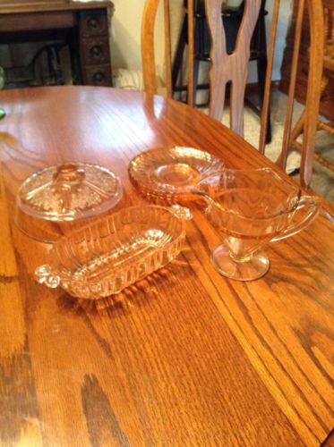 Title (ebay affiliate link): Lot Of 6 Pink Depression Glass - Saucers, Creamer, Bowl, Butter Dish Cover