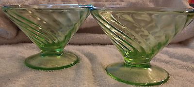 Set of 2 Vintage Green Depression Vaseline Glass Sherbert/Custard Dishes