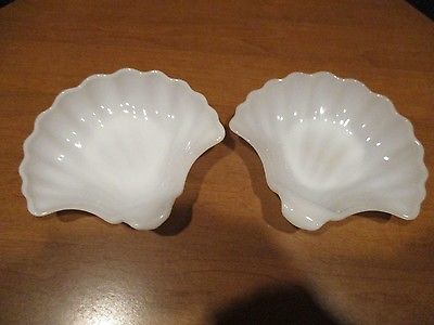 Title (ebay affiliate link): 2 Vintage White Milk Glass Clam Shell Dishes - for Sea Food - Rings - Nuts etc.