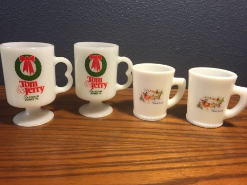 4 VTG MCKEE MILK GLASS TEA CUP COFFEE MUG COLLECTORS XMAS TOM AND JERRY '79