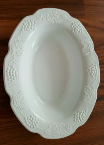 Title (ebay affiliate link): VINTAGE INDIANA COLONY MILK GLASS HARVEST GRAPE OVAL VEGETABLE SERVING BOWL- EUC