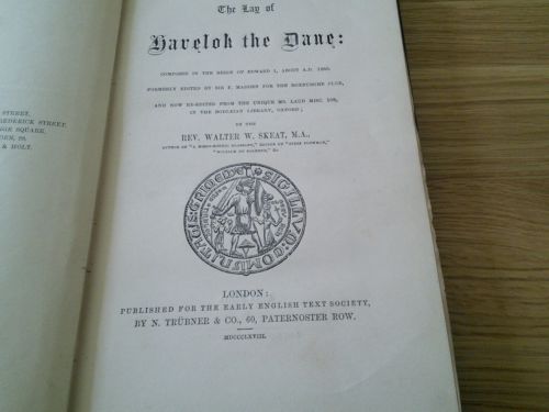 Title (ebay affiliate link): The Lay of Havelok the Dane Walter Skeat 1868 Early English Text Society
