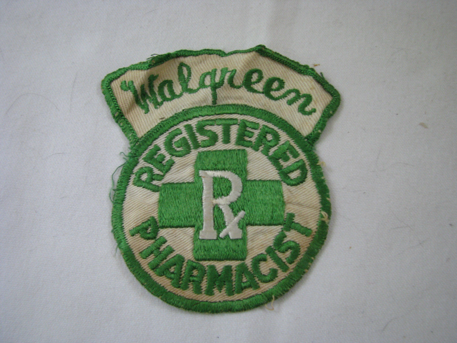 Title (ebay affiliate link): Vintage Walgreen Green & White Fabric Patch Registered Pharmacist