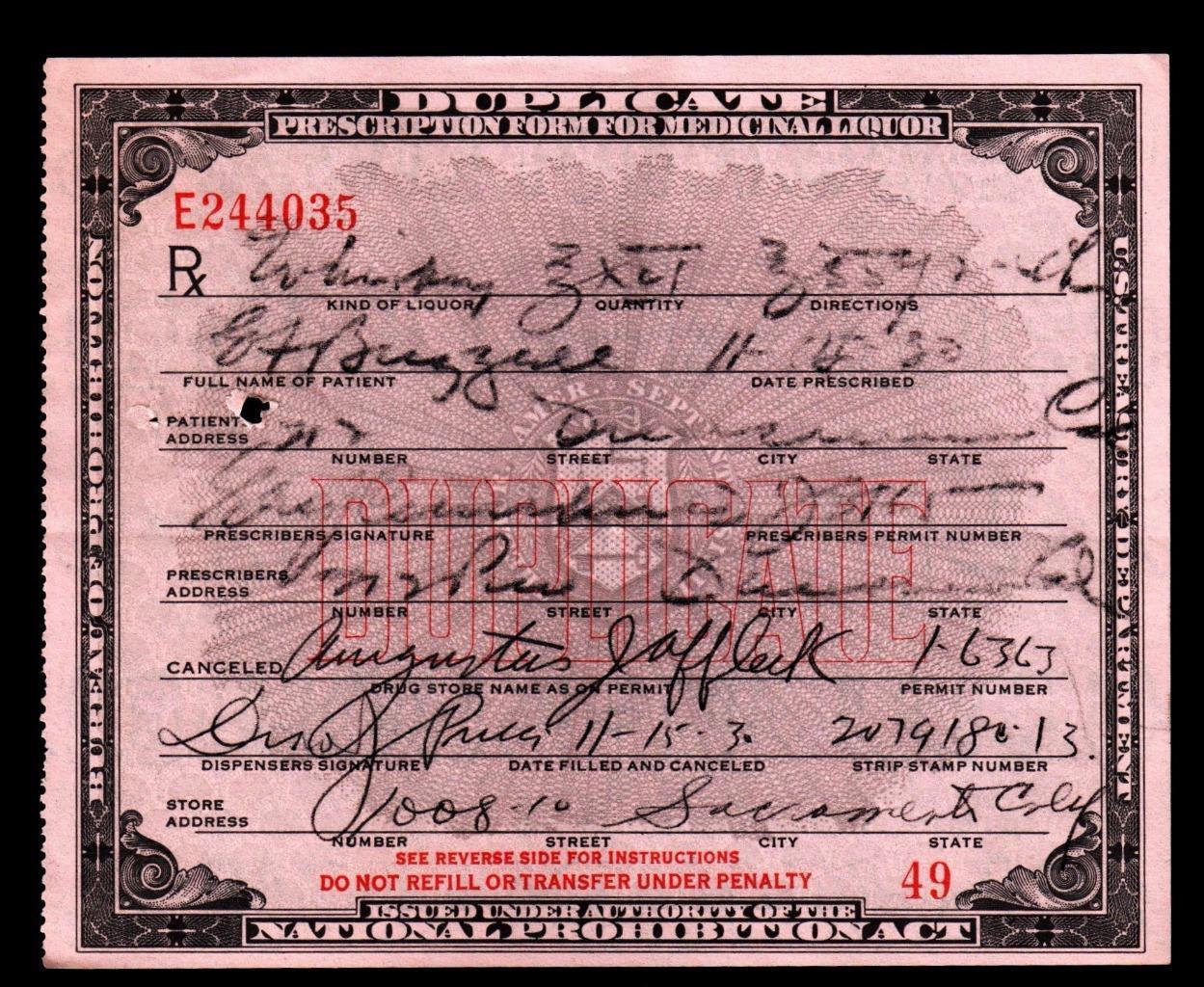 Prohibition Whiskey Prescription Pharmacy Vintage 1930 Doctor Pharmacy Nurse Bar