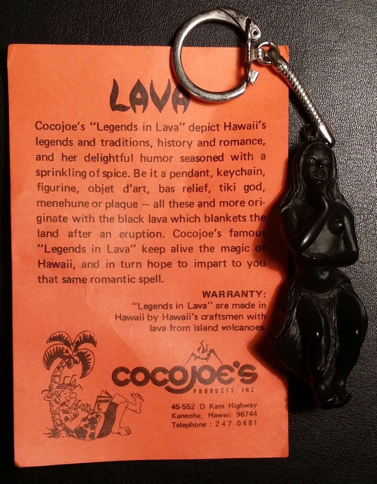 Title (ebay affiliate link): Vintage CocoJoes Hawaiian Lava & Resin Hula Girl Keychain