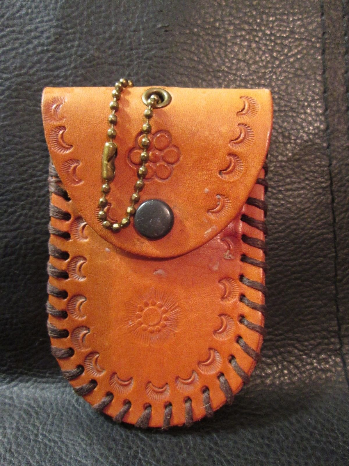 Title (ebay affiliate link): Vintage Hand Tooled Thick Brown Leather Snap Close Key or Belt Loop Case