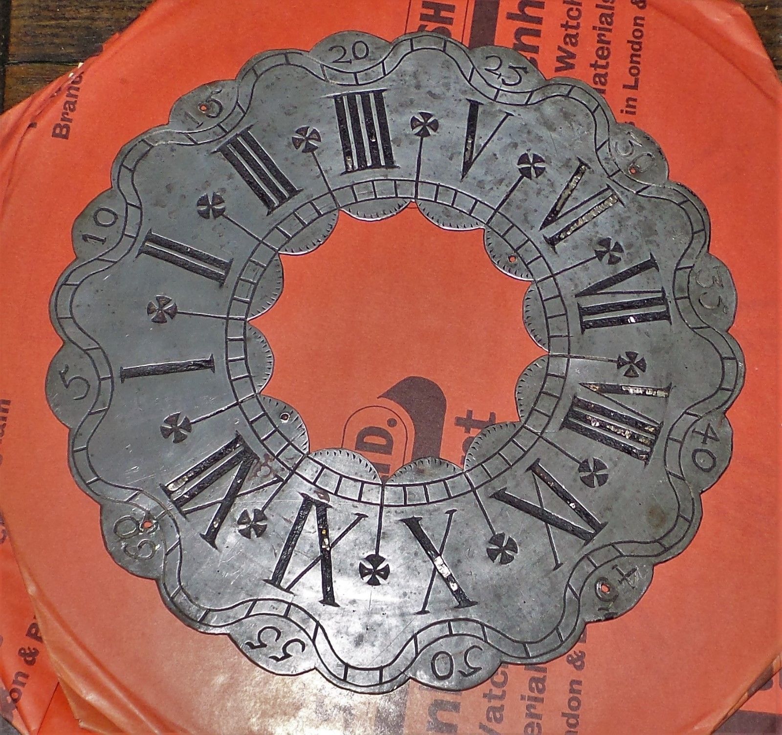 Antique 9 1/4 inch silver metal clock dial
