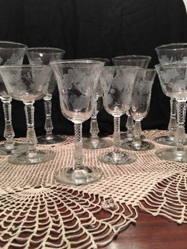 Title (ebay affiliate link): Etched Crystal Wine, Champagne Ice Tea/ Water Twisted Stem ware Lot of 10