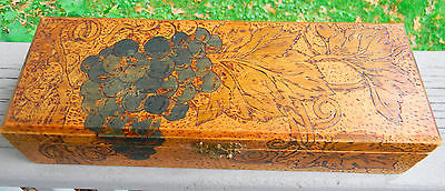 Antq/vntg pyrography Flemish Art Co. 681 wooden hinged glove box grape theme