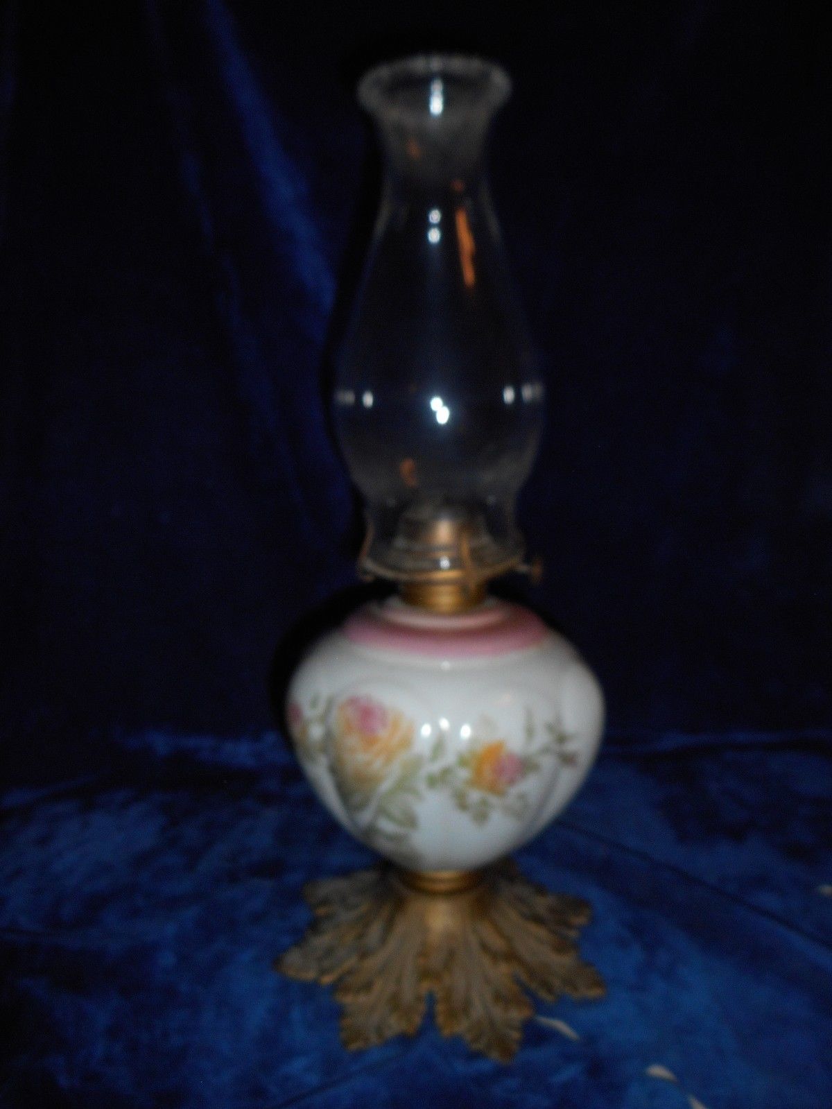Title (ebay affiliate link): ANTIQUE 1870'S OIL LAMP, HAND PAINTED FONT CAST IRON BASE , PLUME & ATTWOOD