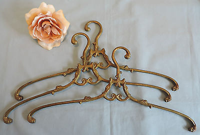 Set of 3 French Antique Brass Art Nouveau Ornate Coat Hangers
