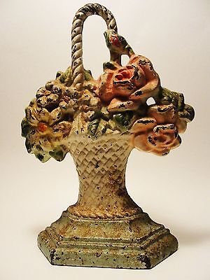 Antique Hubley Cast Iron Doorstop #152 Floral Basket