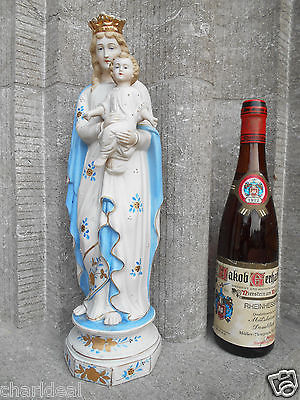 BIG ANTIQUE FRENCH PORCELAIN BISQUE MARY MADONNA CHILD JESUS STATUE FIGURINE
