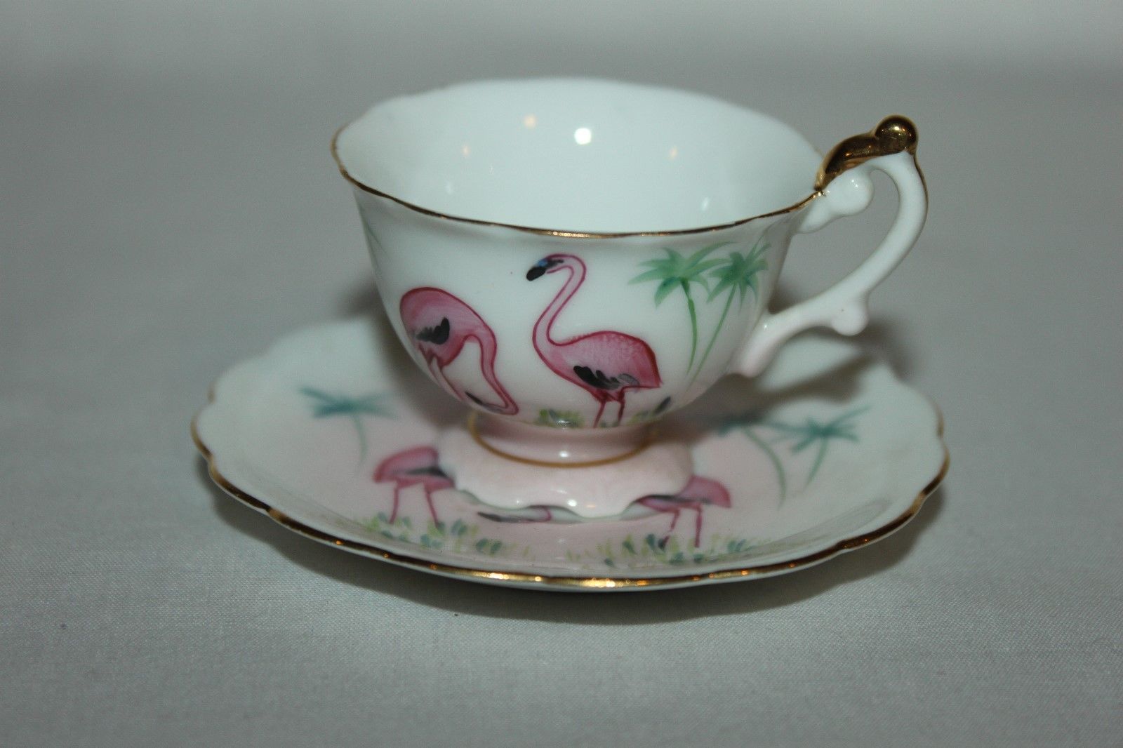 Vintage Mini FLAMINGO Tea Cup and Saucer - Made in Japan