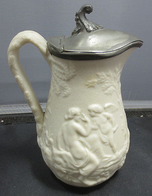Parian Ware White Syrup Pitcher With Raised Cupid Design