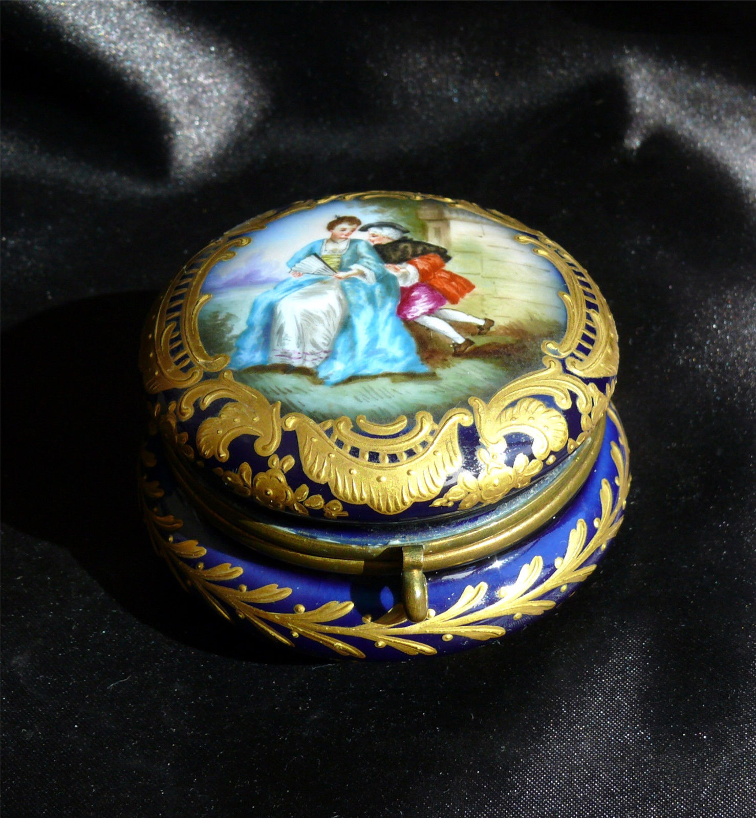 Title (ebay affiliate link): HP Courting Couples Scene Cobalt Raised Gilt Small Dresser Jar, Edme Samson