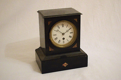 ANTIQUE C.1900 FRENCH BLACK SLATE AND MARBLE MANTEL CLOCK