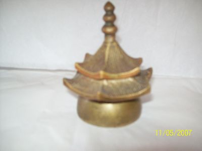 vintage brass Pagoda bell hand dinner bell heavy solid brass 3 3/8" nice patina
