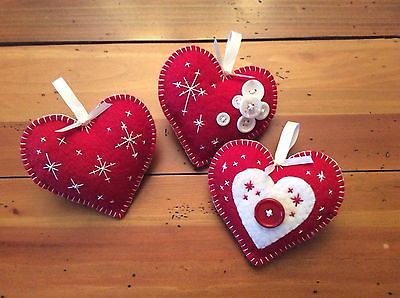 Title (ebay affiliate link): PRIM WOOL FELT PENNY RUG CHRISTMAS BOWL FILLERS ORNIES HEARTS,BUTTONS,SNOWFLAKES