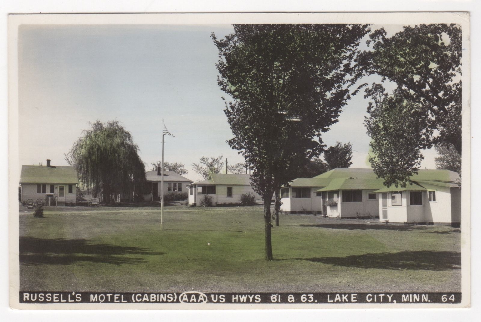 Postcard: Russell's Motel Cabins, Lake City, Minn.