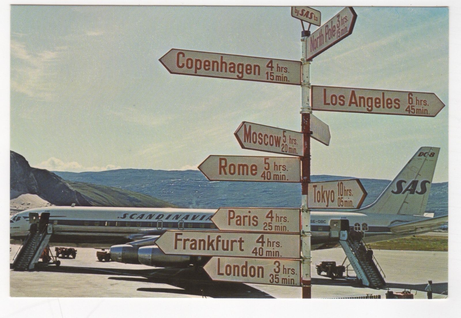 Postcard: DC-8 & Signpost, Sondre Stromford, Greenland