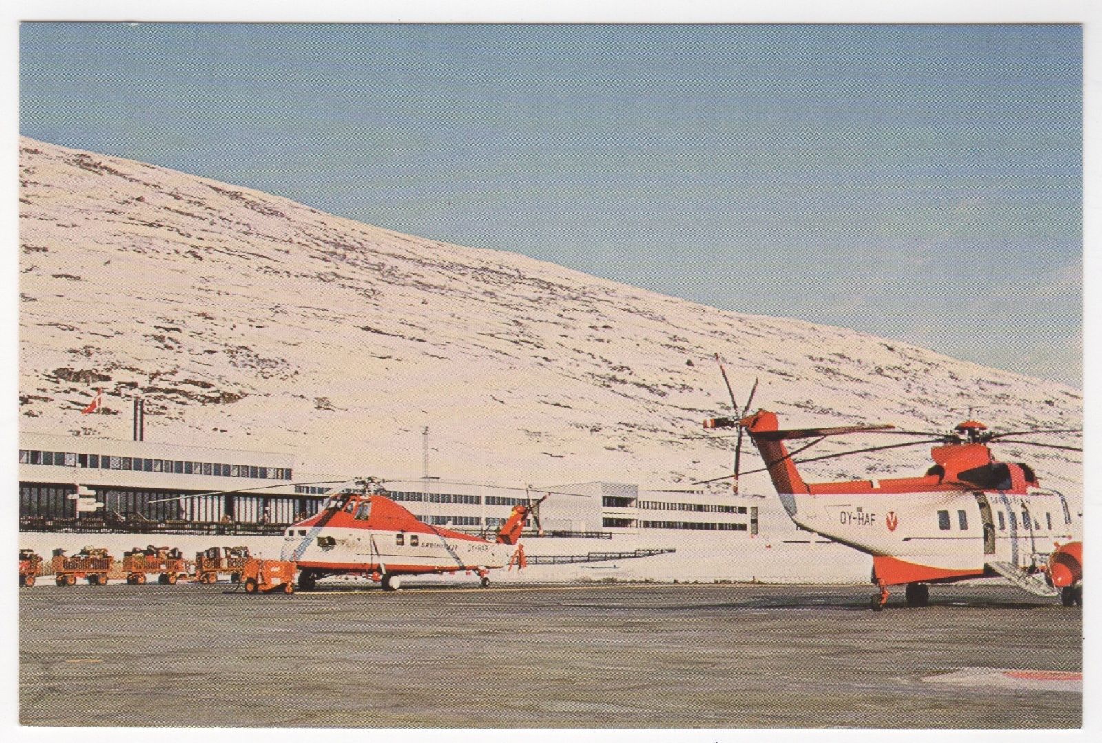 Postcard: Helicopters refueling, Sondre Stromford, Greenland, 1977