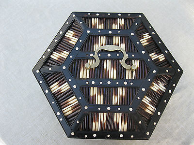 Outstanding Ceylon Antique Hexagon Porcupine Quill Ebony Trinket Jewellery Box