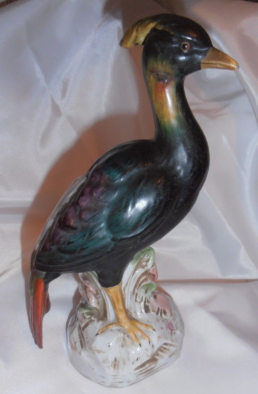 Antique/Vintage German Porcelain Hand Painted Black Bird Figurine