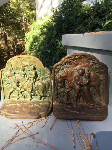Title (ebay affiliate link): Vintage Bookends, Knights, Crusades, Courtly Love, Cast Iron "Titus Foundry"