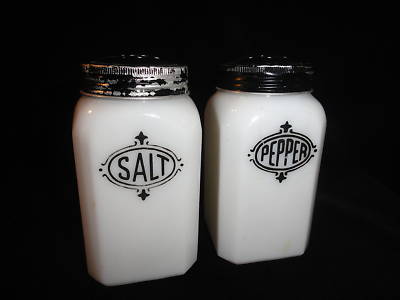 McKEE MILK GLASS DELPHITE RANGE SALT & PEPPER SHAKERS