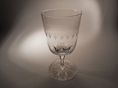 Title (ebay affiliate link): 19th C. Engraved Sandwich Blown Flint Glass Goblet - Banded Leaf & Lacy Dot