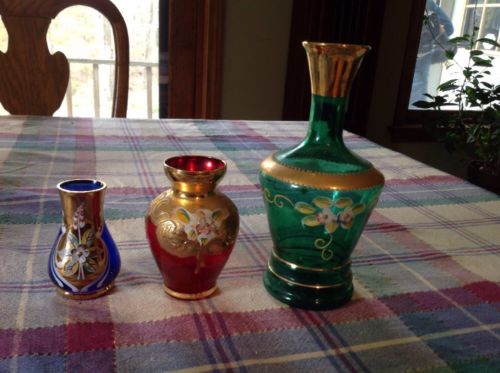 3 Bohemian Hand Painted Vases