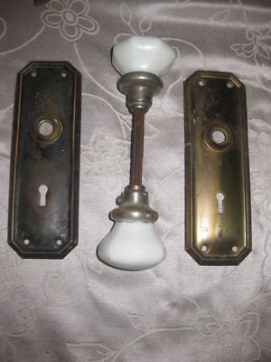 ANTIQUE MILK GLASS DOOR KNOBS AND BACKPLATES