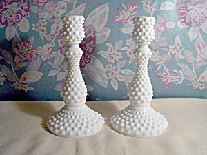 HOBNAIL MILK GLASS CANDLE HOLDERS by FENTON