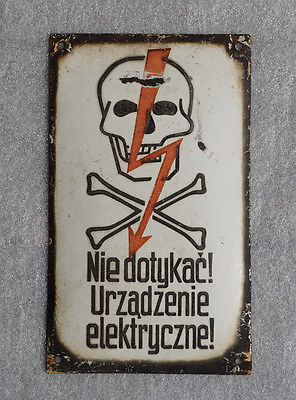 Title (ebay affiliate link): original enamel sign with skull + crossbones to indicate danger. 100% old+orig.