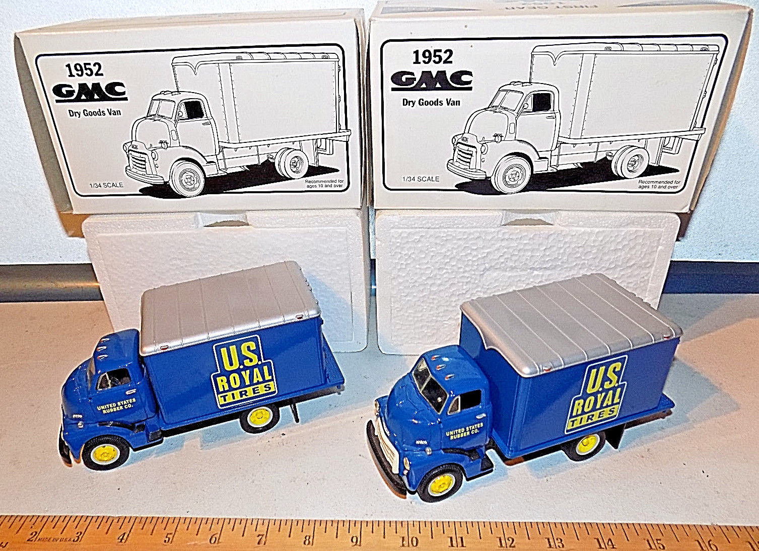 2 RARE VINTAGE NEW FIRST GEAR 1952 GMC US ROYAL TIRES DRY GOODS DELIVERY TRUCK