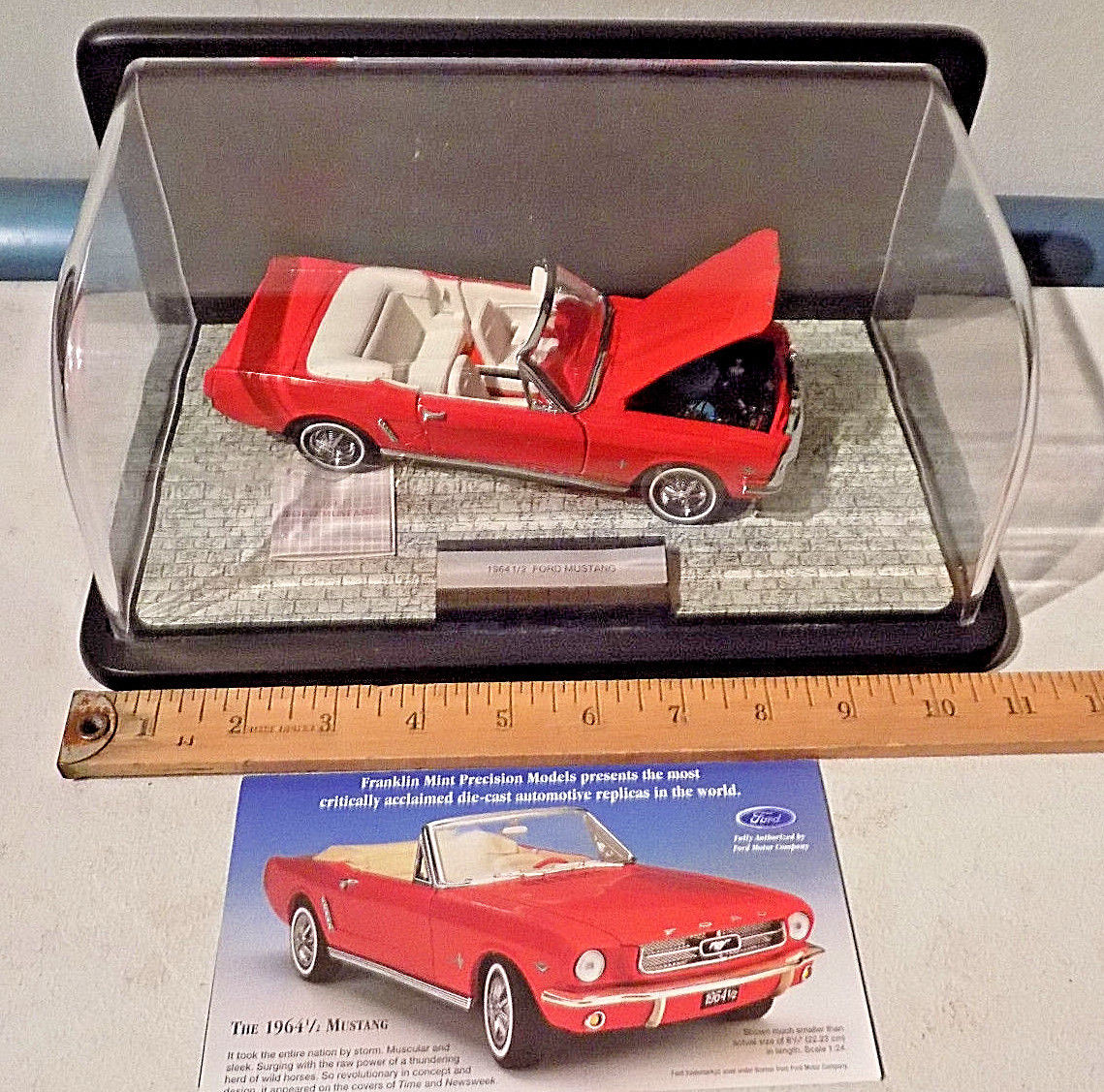 Title (ebay affiliate link): VINTAGE NEW FRANKLIN MINT 1964 1/2 FORD MUSTANG CONVERTIBLE RED DIECAST CAR 1:24