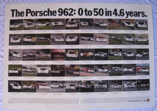Vintage, original Porsche 962 Showroom poster: 0 to 50 in 4.6 years 1989