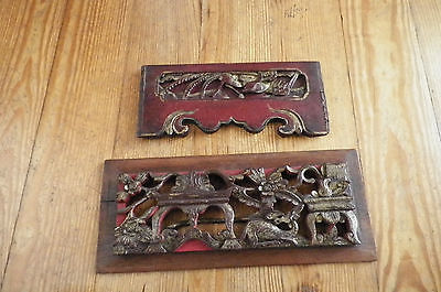 Antique Chinese Furniture Architectural Hand Carved Wood Panel SET of 2